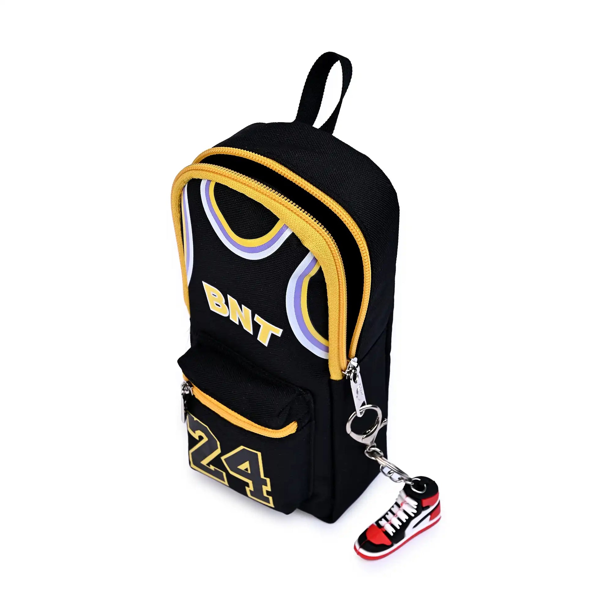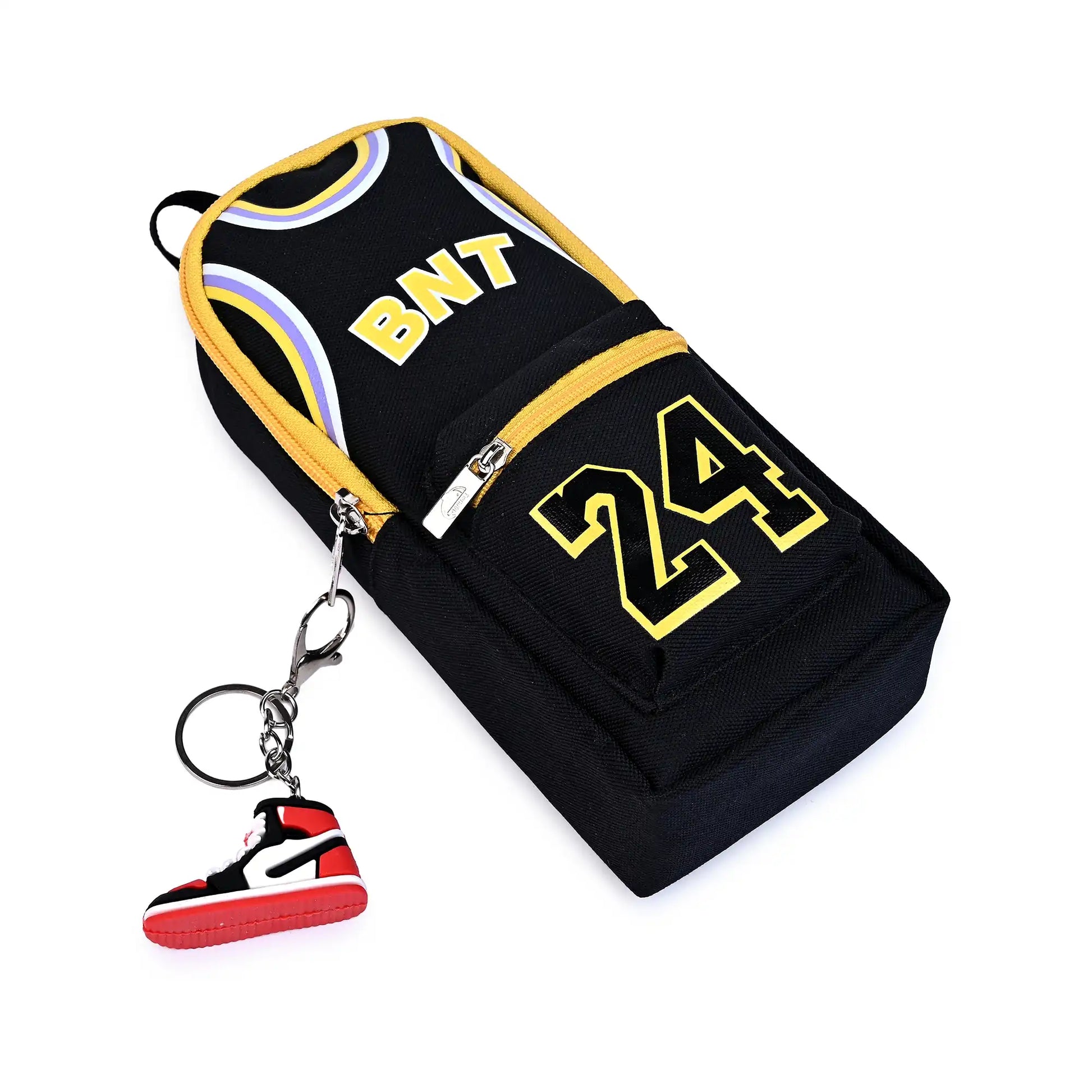 Basketball Jersey 3d Pencil Pouch – Black And Gold With Shoe Keychain