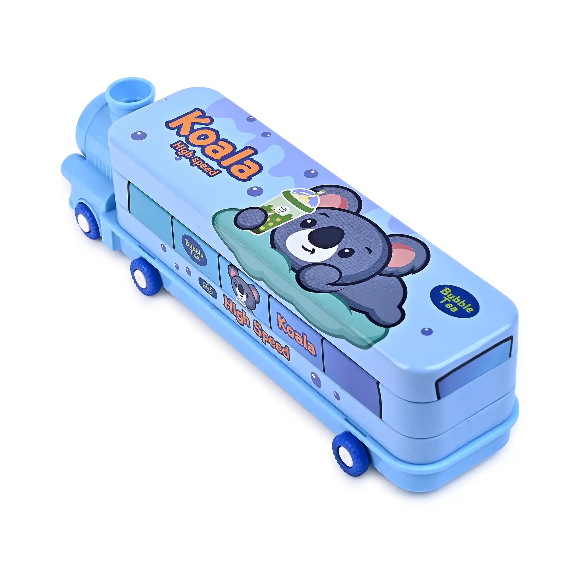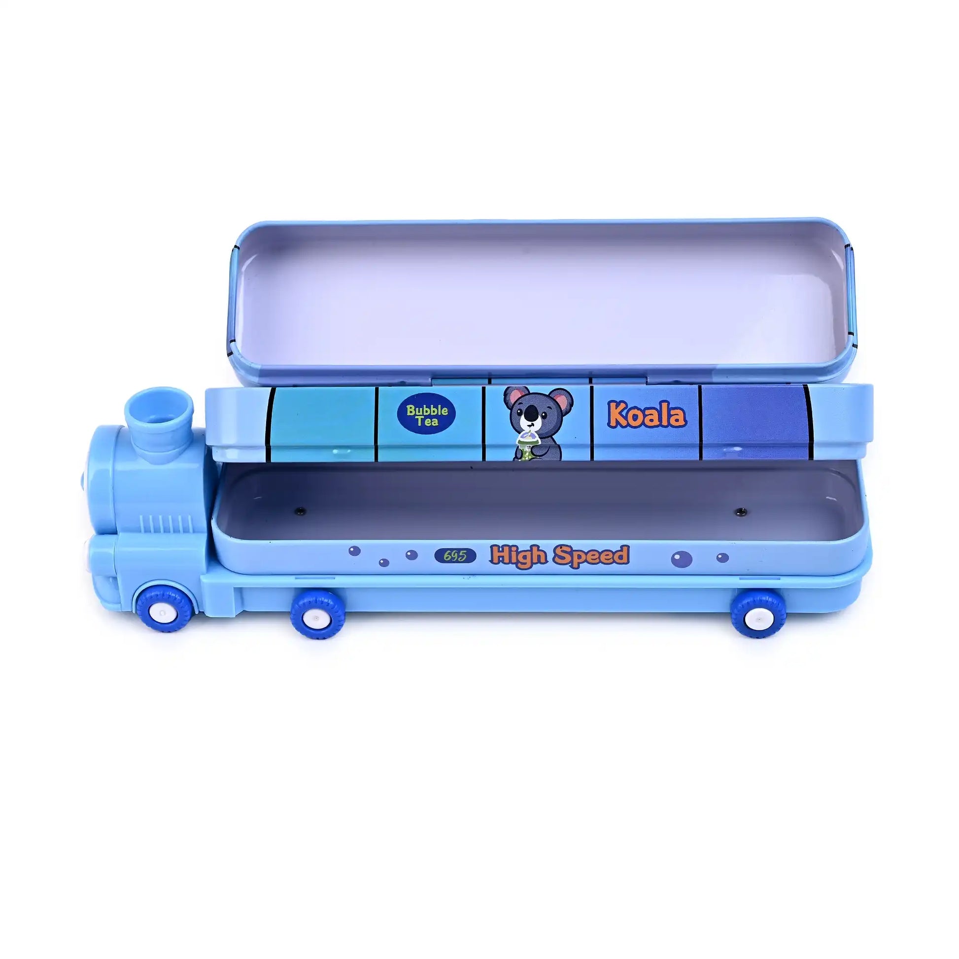Blue Train Shaped Pencil Box With Mini Engine – Spacious And Fun Stationery